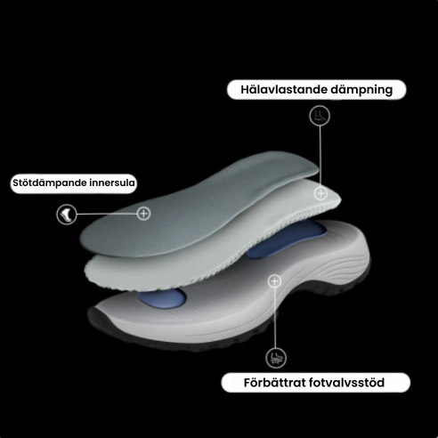 Förbättrar fotens position och avlastar lederna genom att lyfta och stabilisera fotvalvet.